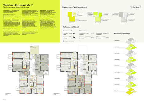 Gefordert waren die Verringerung des Gesamtenergieverbrauchs, eine Verbesserung des Schallschutzes, eine Umgestaltung der Wohngrundrisse um demografischen und gesellschaftlichen Veränderungen gerecht zu werden, die barrierefreie Erschließung des Gebäudes und Wohn-Umfeldes sowie eine Senioren-Wohngemeinschaft. Der neue Zugang führt über eine breite Rampe zum überdachten Eingangsbereich. Die bestehende Treppenhausfassade wird abgebrochen und durch eine weiter vorgezogene Glasfassade ersetzt. Hinter dieser Fassade entsteht ein Luftraum, der den verglasten Fahrstuhl aufnimmt und das bisher sehr enge Treppenhaus deutlich aufwertet. < 1 2 3 4 > |